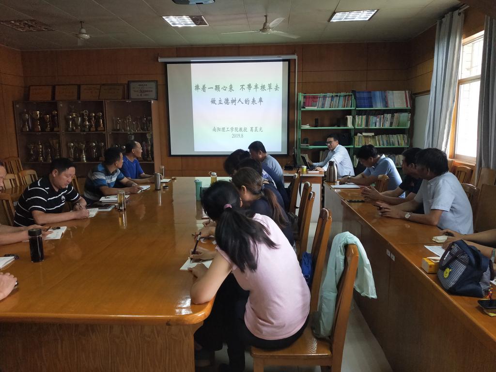 1、高校教师师德主题教育。邀请我校马克思主义学院院长葛晨光同志主讲题为《捧着一颗心来,不带一根草去,做立德树人表率》讲座(党课)。