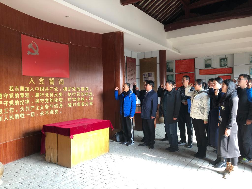离开竹园村,全体党员乘车前往位于南召县泰山庙乡曹店村的中共南召第一党支部旧址,开展“不忘初心,牢记使命,弘扬革命传统”主题党日活动。曹店是南召县历史上著名的早期革命活动地,1929年春,地下党员张景昉受党组织委派,回家乡曹店开展革命工作,发展党的组织。19307月成立党小组,是年底成立南召县第一个中共支部——中共曹店支部。党员同志们在展馆内切身感受革命先驱的奋斗历程,先烈们矢志不渝的革命精神深深打动了每一位党员。在展厅内的党旗前,体育教学部党支部组织全体党员重温了入党誓词,并庄严承诺:以革命先驱先烈为榜样,不忘初心,牢记使命。在工作中,坚定理想信念,弘扬革命传统,发挥党员模范带头作用,致力于创新改革,为培养中国特色社会主义合格接班人做出新贡献。