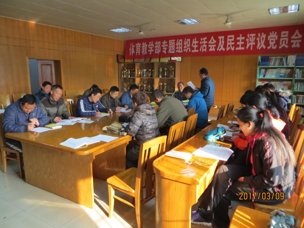 2017年3月9日,体育教学部党支部按照学校党委组织部印发的《关于召开“两学一做”专题组织生活会及开展党员民主评议工作的通知》及《体育教学部“两学一做”专题组织生活会及开展党员民主评议工作方案》,如期召开了专题组织生活会和民主评议党员会。会上,党支部书记隋晓航同志首先说明了本次专题组织生活会及民主评议党员会议内容、程序以及要求。