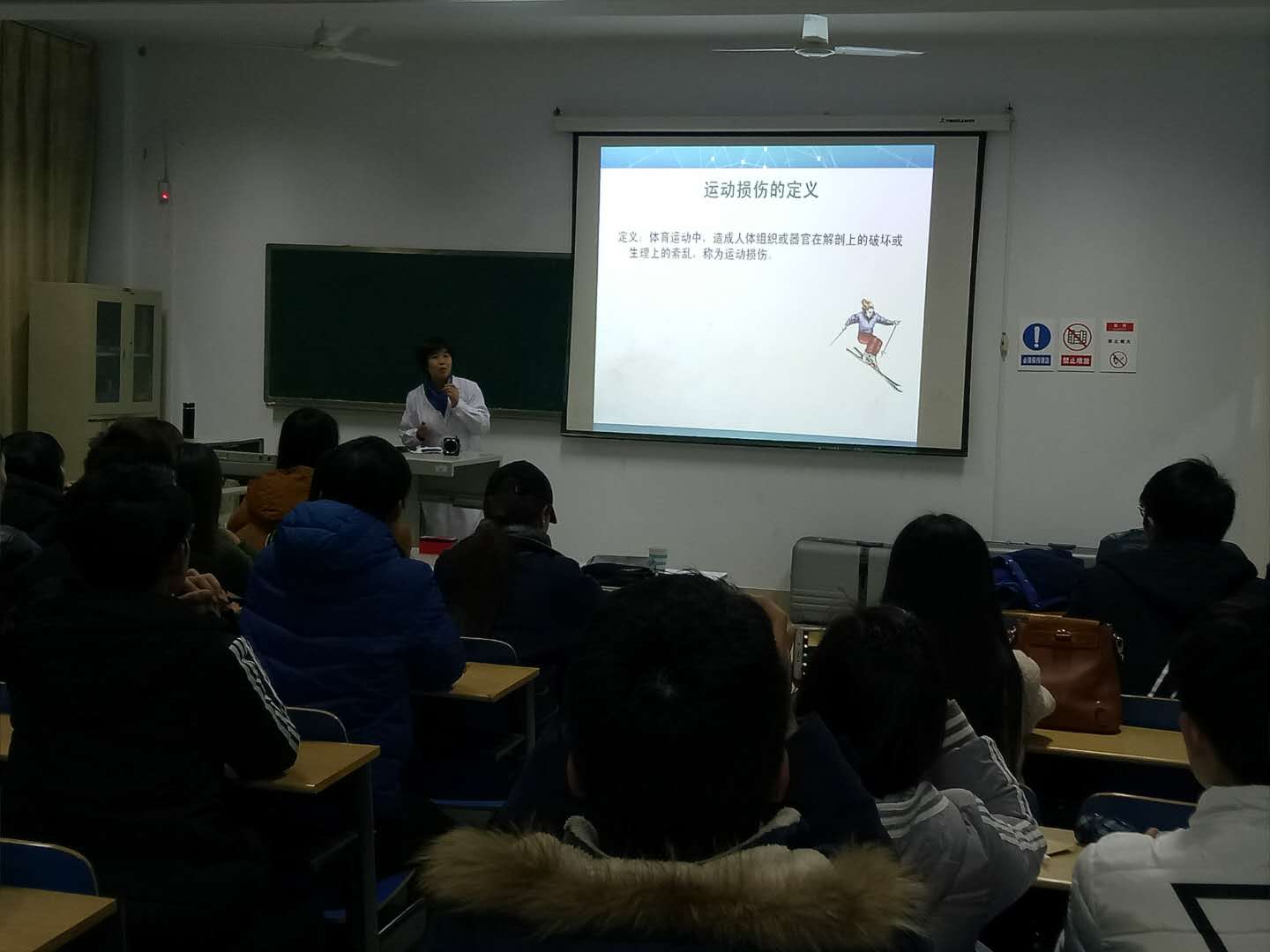 2017年11月29日晚7点,体育教学部和张仲景国医国药学院在国医学院318教室联合举办了第一届俱乐部体育文化节运动健康知识讲座。讲座的题目是“运动损伤的院前急救”,张仲景国医国药学院李忠副教授主讲了本次讲座。来自篮球、足球、太极拳等20个俱乐部的60多名骨干会员聆听了本次讲座。