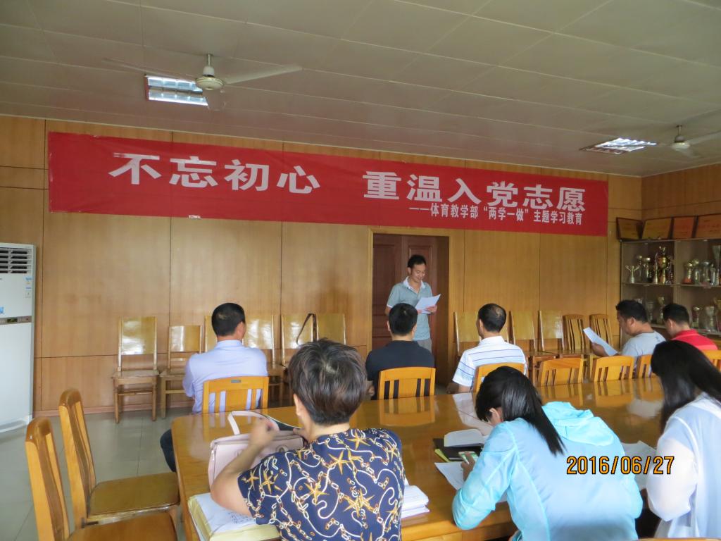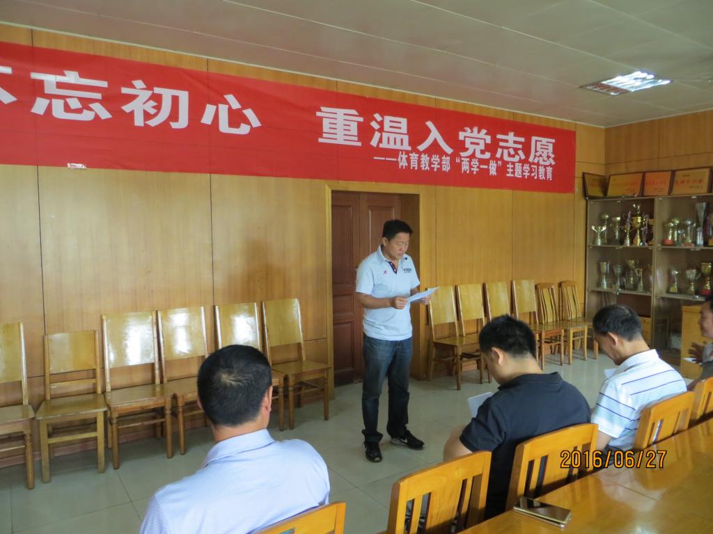 在即将迎来中国共产党建党95周年之际,体育教学部党支部于2016年6月27日上午9点组织全体党员隆重举行“不忘初心,重温入党志愿”主题活动。本次主题活动分三个部分: