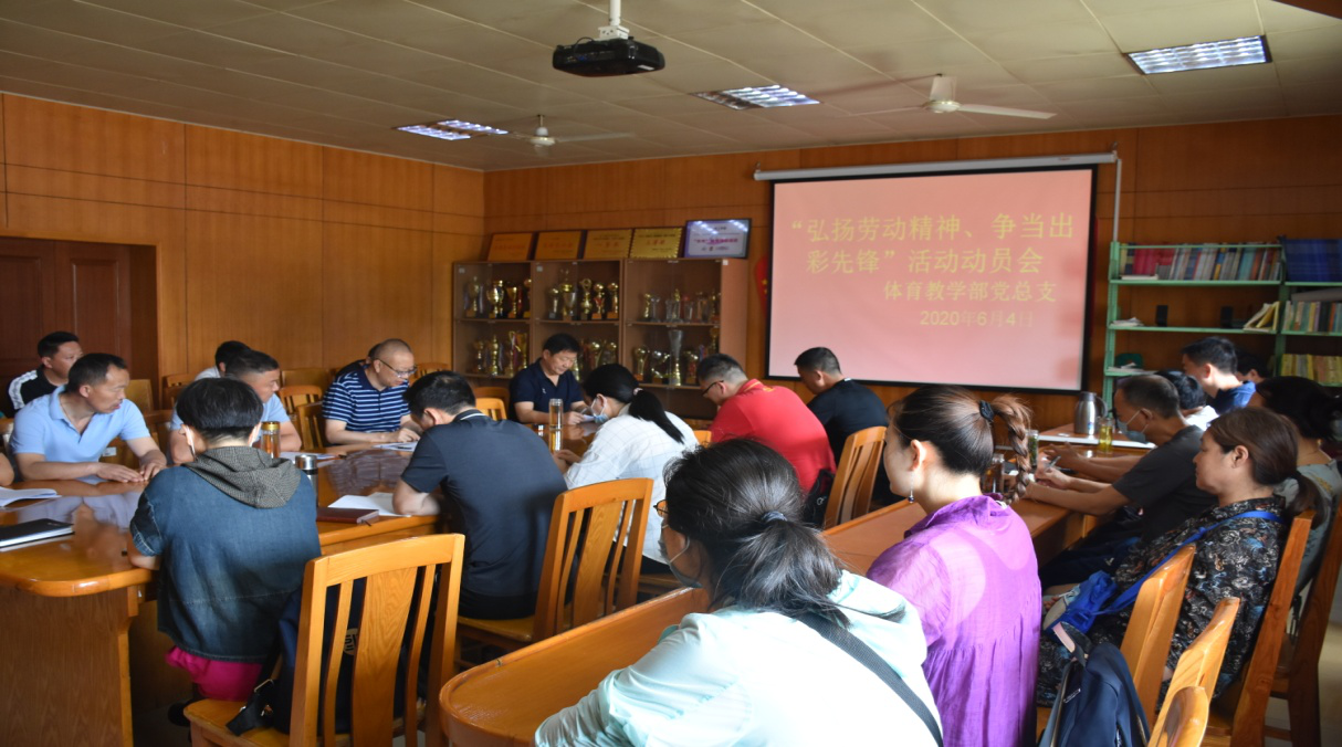 2020年6月4日上午,在体育教学部会议室,由党总支书记丁颖海同志组织召开全体党员大会,按照学校相关要求,带领大家认真学习习近平总书记给郑州圆方集团全体职工回信精神,并对开展“弘扬劳动精神、争当出彩先锋”活动进行了动员。