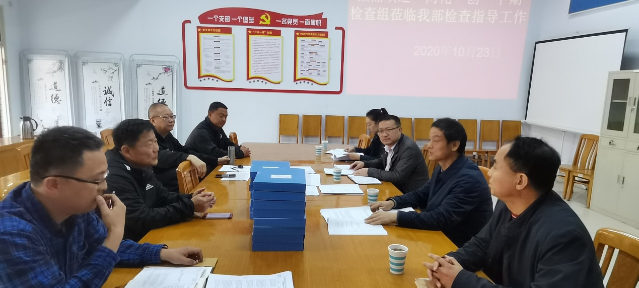 10月24日下午,我校两化一创工作指导检查组第三小组一行五人由机关党委王喜平书记和校党委组织部丁欢副部长带队莅临我部检查党支部建设和样板支部创建工作,我部党总支书记丁颖海,统战委员、副主任顾长海,纪检委员、体育教学部协理、教务科研班主任马晓宁及两位党支部书记参加见面会。
