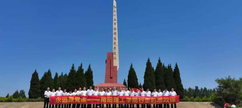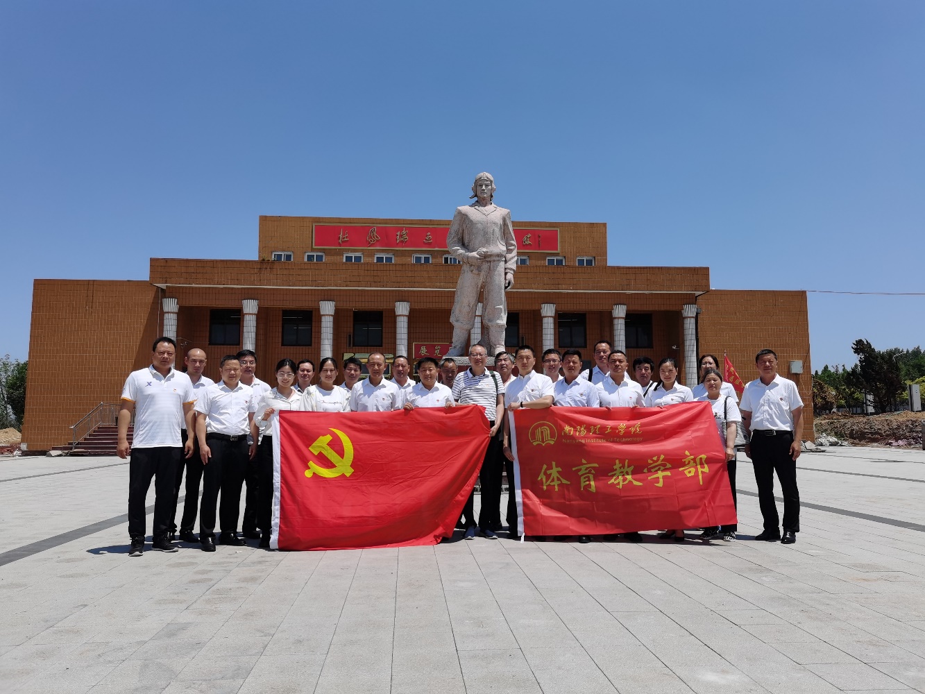 6月22日,体育教学部党总支带领全体党员和入党积极分子赴方城杜凤瑞烈士纪念馆、红二十五军血战独树镇纪念地参观学习,并举行行走的思政课系列活动。
