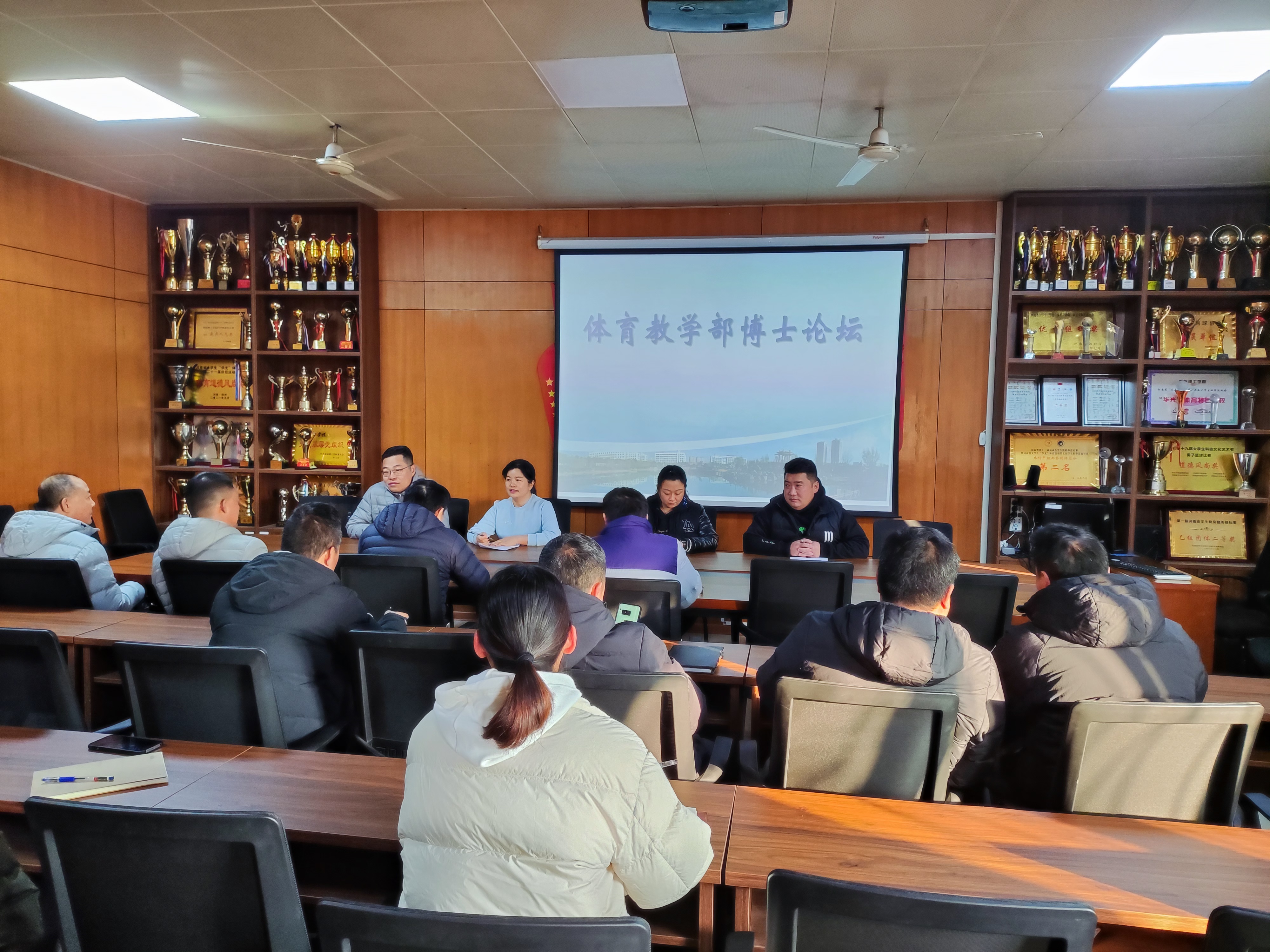 为培养教师综合素质能力,提高教师学术能力,同时做好体育教学部科研团队建设工作。12月5日,体育教学部在会议室举办2023年体育教学部博士论坛。体育教学部党总支书记张金梁、副主任顾长海、马晓宁出席此次会议,隋晓航教授及我部教师参加会议。