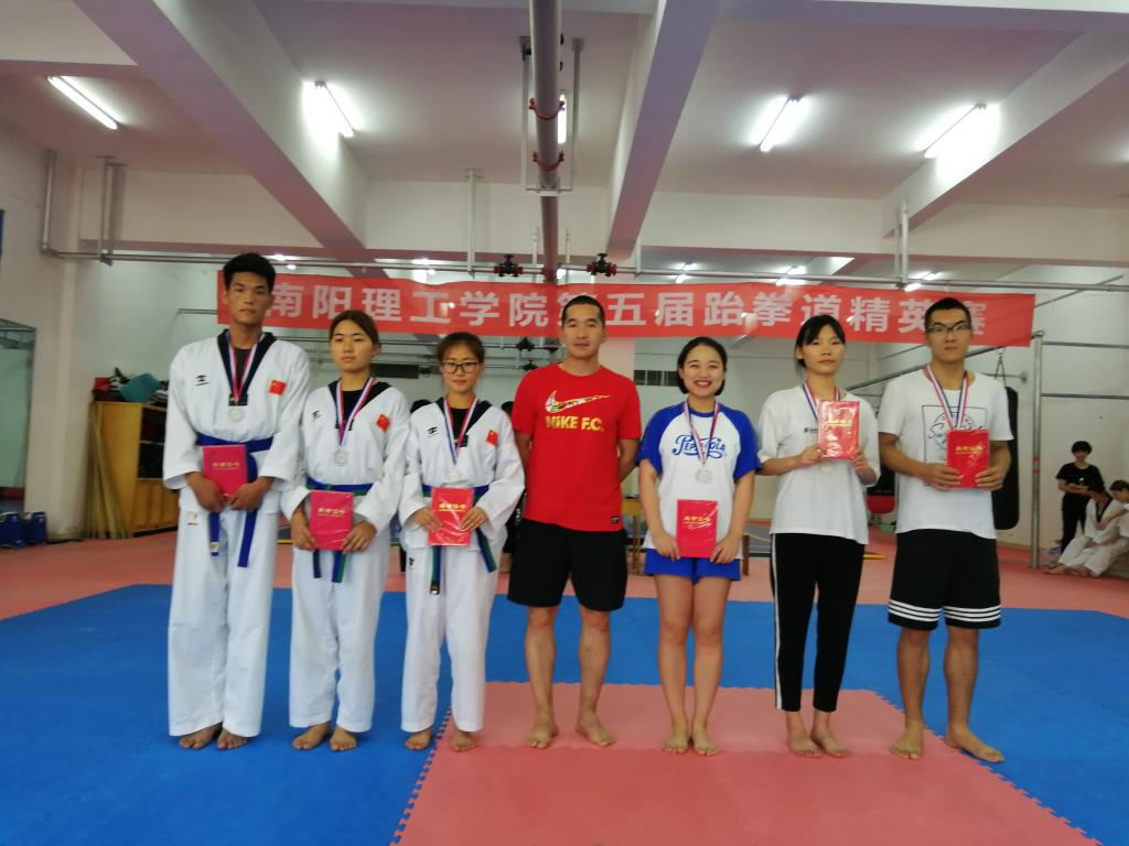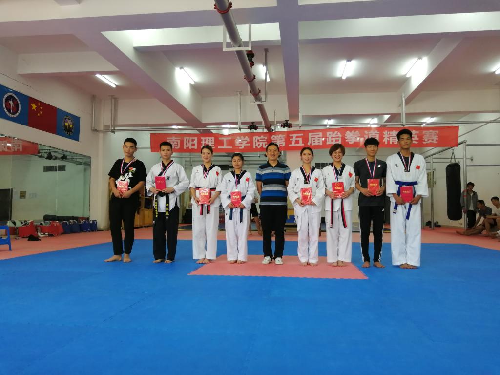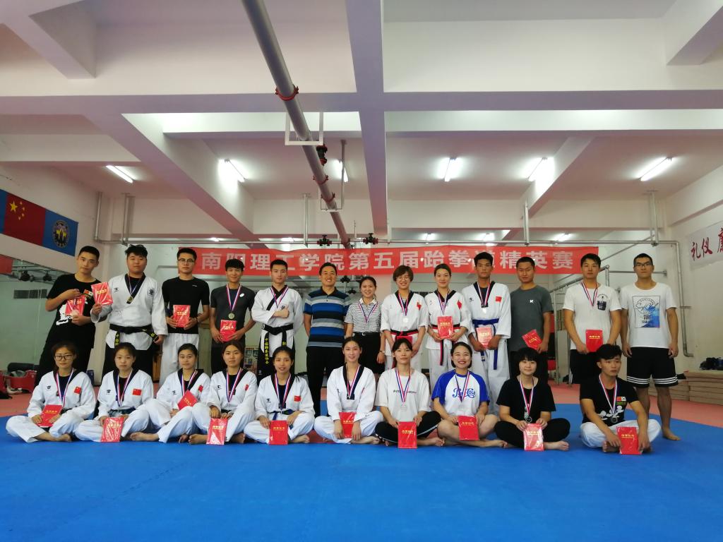 南阳理工学院第五届跆拳道精英赛,于2018年6月10日圆满落下帷幕。本次比赛得到了学校领导和体育运动委员会的大力支持,由体育教学部主办、南工跆拳道俱乐部承办,在体育馆隆重举行。运动员们在公平、公正、公开的竞技环境中各显身手、顽强拼搏,展示了高超的竞技水平和良好的精神风貌,创造出了骄人的运动成绩,为观众们奉献了一道特色鲜明、水平高超的搏击大餐。