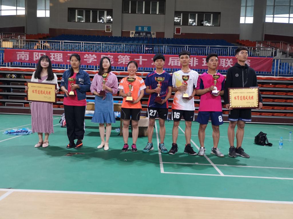 本次比赛经过了激烈的角逐,男子组前三名的队伍是:电子学院、土木学院、机械学院;女子组前三名的队伍是:生物与化学工程学院、软件学院、张仲景国医国药学院;获得体育道德风尚奖的队伍是:软件学院、机械学院。