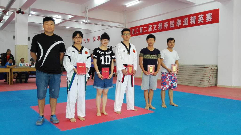 南阳理工学院第二届“文都杯”跆拳道精英赛,经过近两周的激战终于圆满落下帷幕。本次比赛得到了学校领导和体育运动委员会的大力支持,由体育教学部主办、文都考研协办、南工跆拳道俱乐部承办,在体育馆隆重举行。运动员们在公平、公正、公开的竞技环境中各显身手、顽强拼搏,展示了高超的竞技水平和良好的精神风貌,创造出了骄人的运动成绩,为观众们奉献了一道特色鲜明、水平高超的搏击大餐。