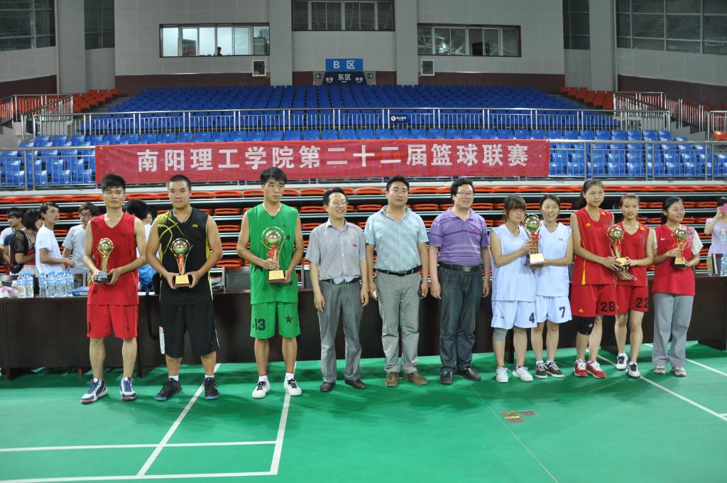 随着国家级裁判员田林一声哨响,我校第二十二届南工杯篮球联赛决赛于2013年6月5日晚在我校体育馆主比赛场展开争夺。本次比赛比赛由体育教学部主办,来自16个学院的32支队伍参赛,历时近1个月,整届比赛组织严密,赛程合理,各参赛队积极参与、准备充分,比赛过程紧张激烈,扣人心弦。充分展现了我校学生精神面貌。最终软件学院、生物与化学工程学院、张仲景国医学院获得女子组前三名,软件学院、艺术设计学院、机械与汽车工程学院获得男子组前三名,其中软件学院包揽男、女组别冠军,彰显了该学院较强的篮球整体实力,外国语学院女子篮球代表队和经济与管理学院男子篮球代表队获得体育道德风尚奖。