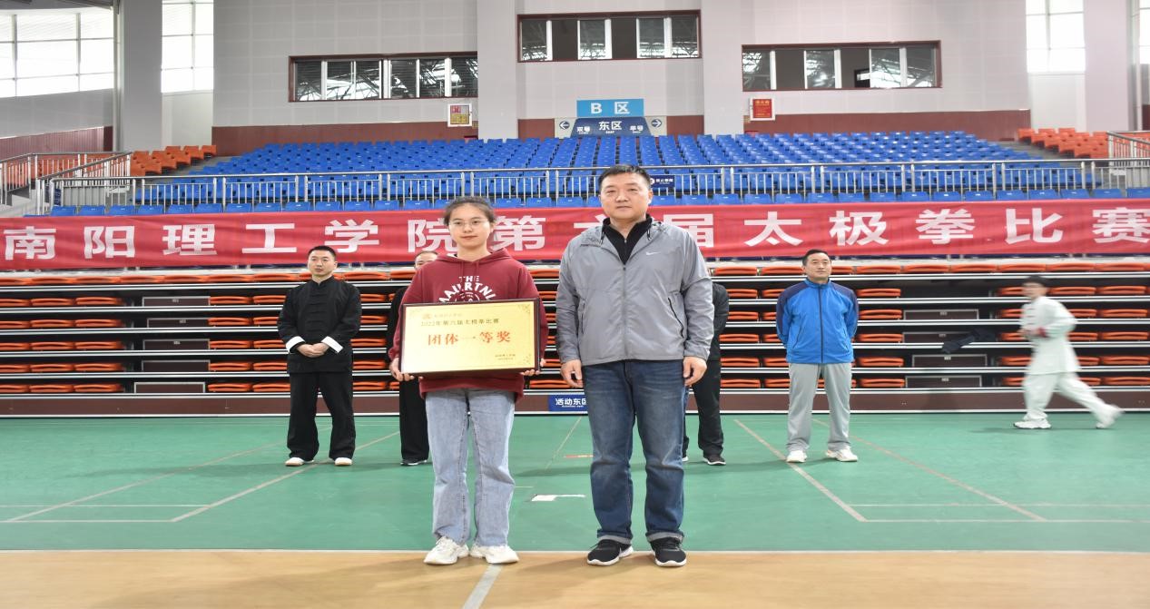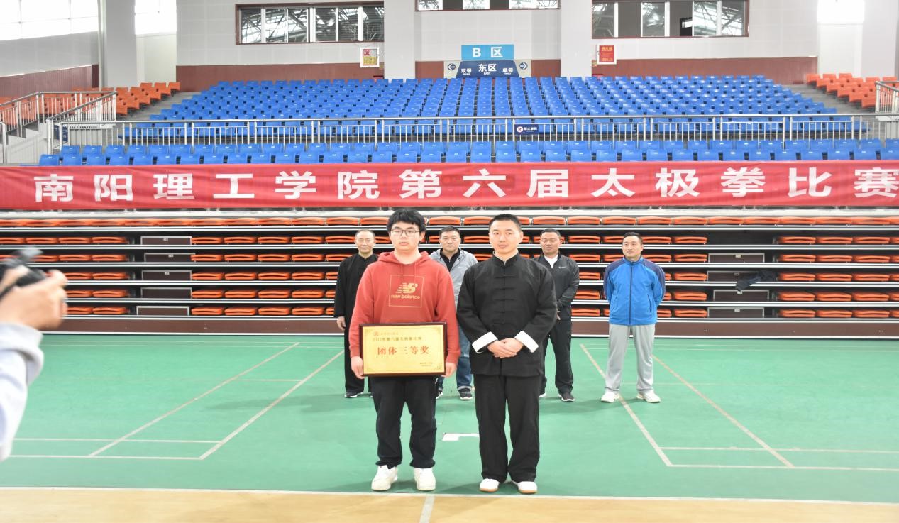 我校第六届太极拳比赛于2022年5月14日上午在体育馆二楼篮球场举行。本届太极拳比赛由南阳理工学院主办、南阳理工学院体育教学部、南阳理工学院大学生体育协会承办,南阳理工学院学生社团联合会和南阳理工学院大学生雷锋营协办。