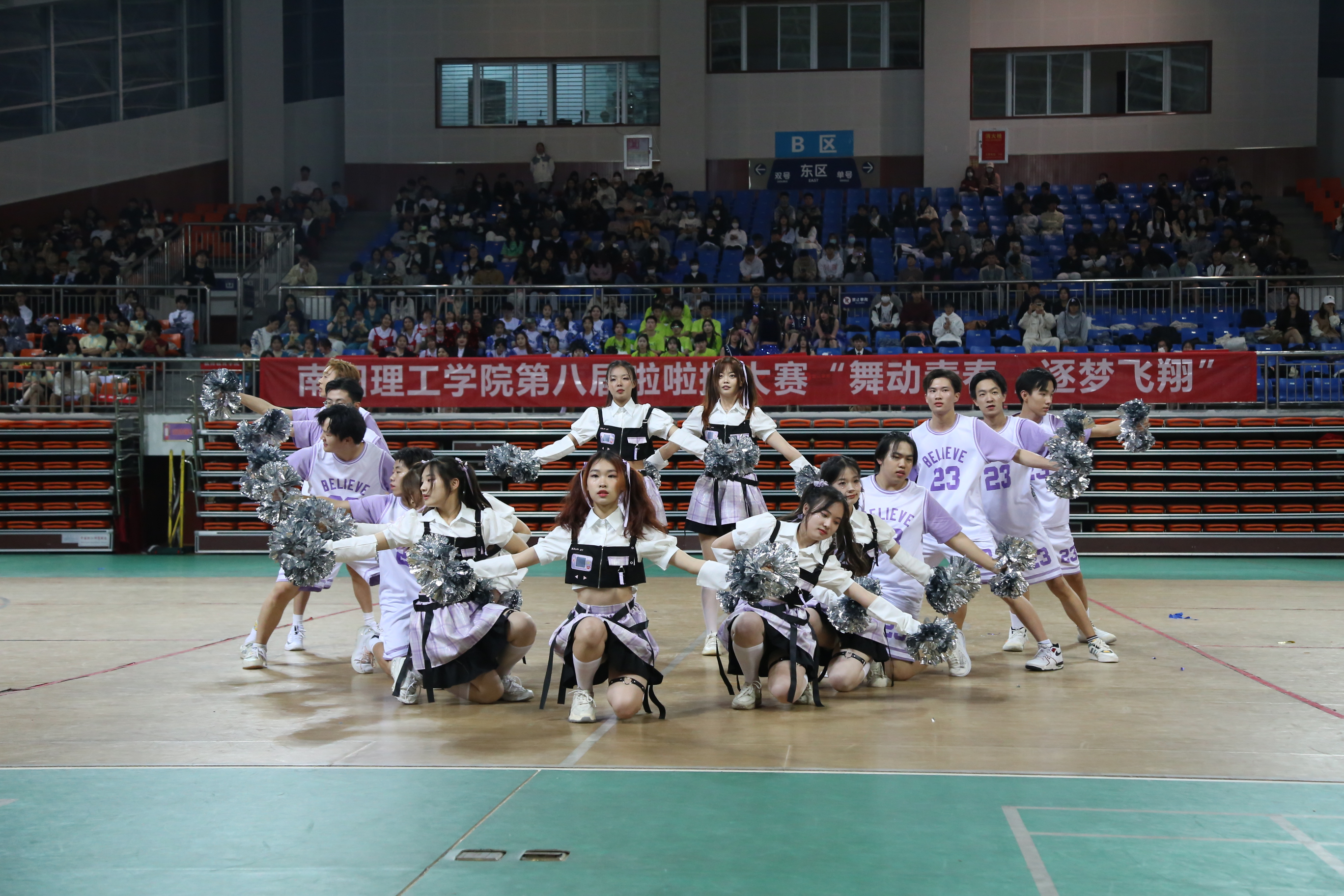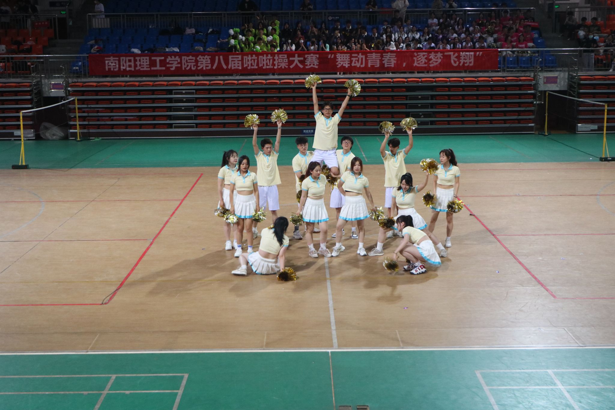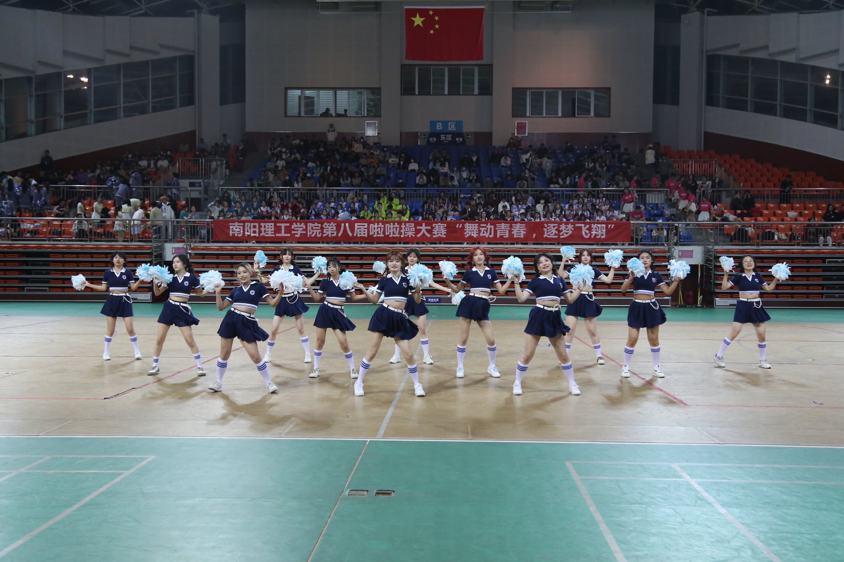 本网讯(特约通讯员/孙云彦 学生记者/纪明哲 齐鑫)5月6日,南阳理工学院第八届啦啦操大赛“舞动青春,逐梦飞翔”在东南校区体育馆二楼顺利举办,副校长张世海及体育教学部负责人观看比赛并为获胜队伍颁奖。