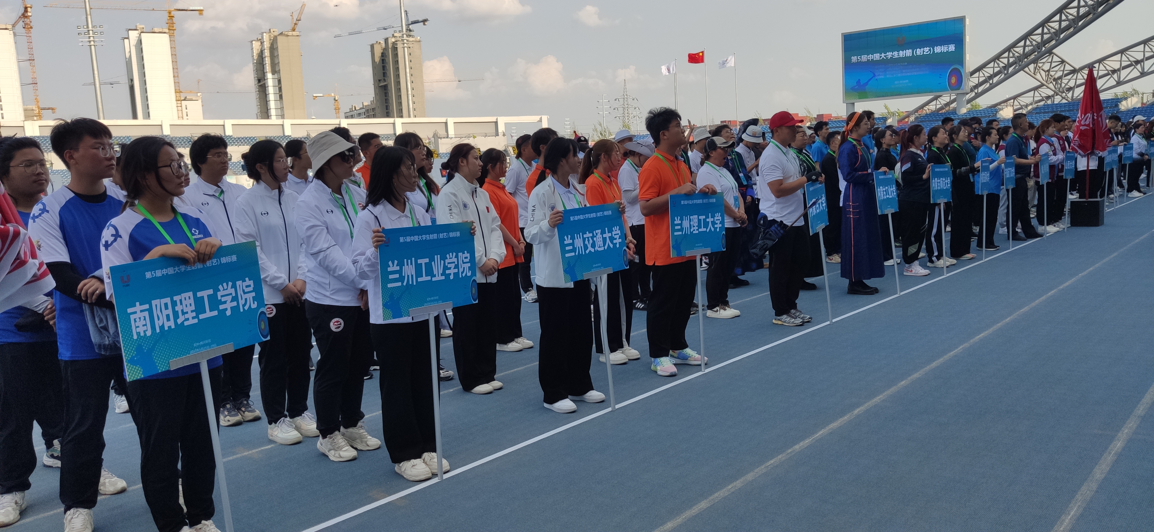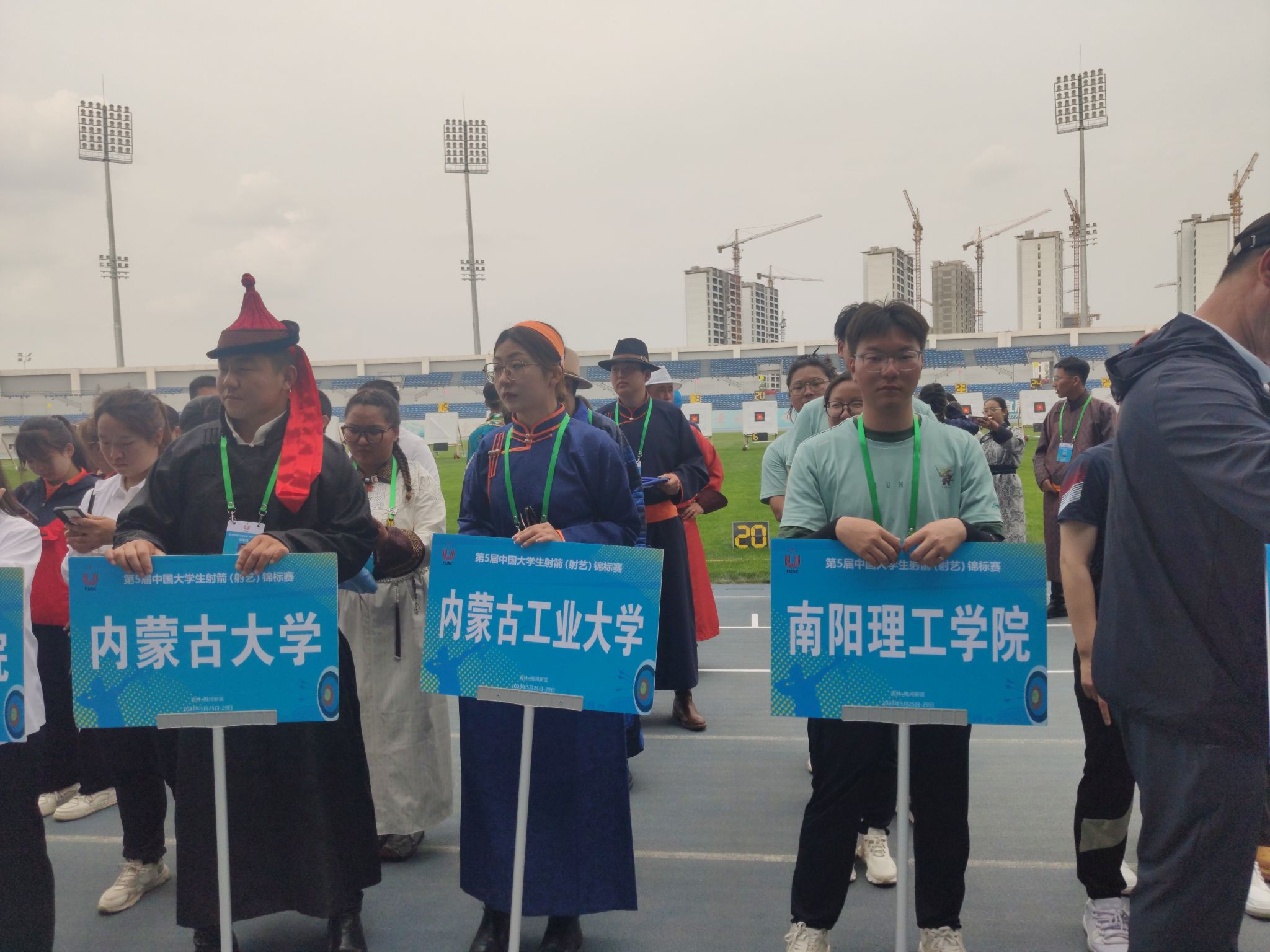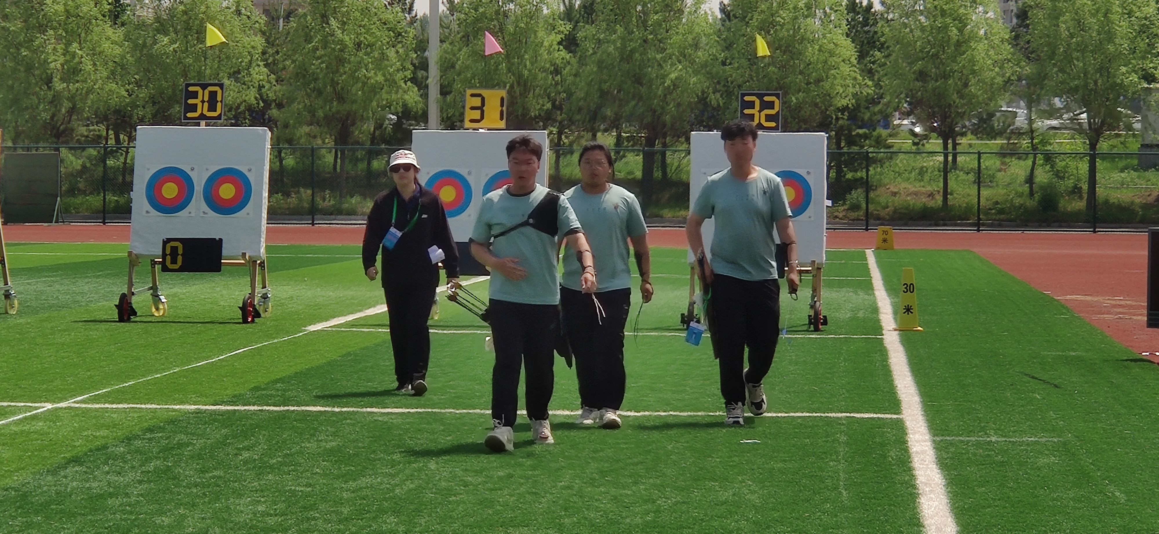 中国大学生体育协会于2023年5月25-29日在吉林省梅河口市举办第5届中国大学生射箭(射艺)竞标赛。共有来自北京大学、浙江大学、上海交通大学、西北大学、内蒙古大学、南阳理工学院等全国52所高校460余名运动员、领队、教练员参赛。本次赛事设男女个人赛、男女团体赛、混团赛。我校派出教练1名,四名学生(3名男生反曲弓,1名女生传统弓)参加本次赛事。