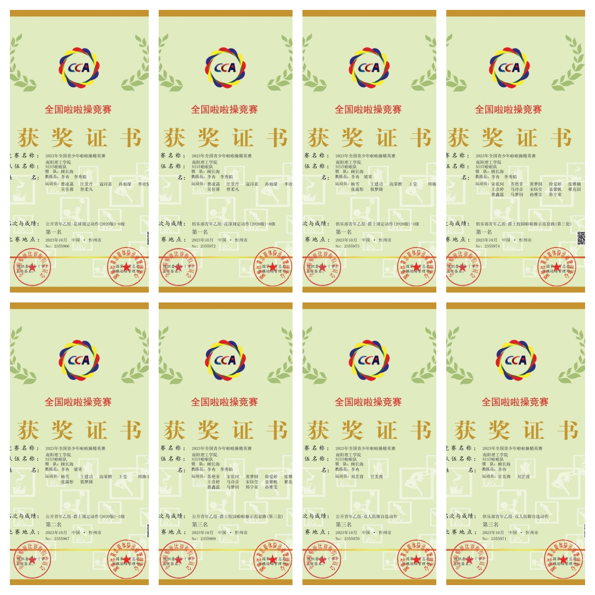 此次比赛,我校的选手们在体育教学部老师带领下,经过八个月的辛勤训练和精心准备,充分发挥团队协作的力量,默契配合,在赛场上展现出了无与伦比的团队精神,呈现了一场场精彩绝伦的啦啦操表演。最终,我校以卓越的表现斩获了四项第一名、一项第二名、3项第三名的好成绩,为我校赢得了荣誉。