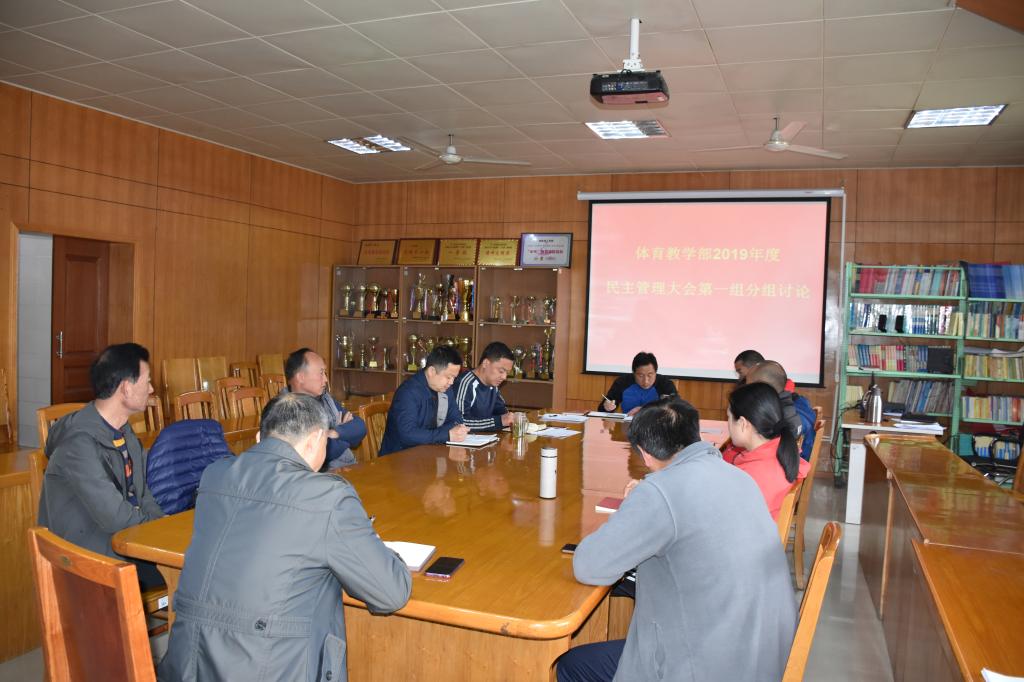 全体教职工听取单位工作报告和分工会工作报告(书面)之后,组织了分组讨论。在分组讨论中,教职工对“两个报告”给予了高度的正面肯定,认为“两个报告”实事求是地报告了2018年单位工作和分工会工作情况,并结合自身实际,依照学校党委行政提出的重点工作目标任务,提出了切实可行的2019年度重点工作任务。在分组讨论中,各位教职工踊跃发言,积极建言献策,在师德师风建设、资队伍建设、体育场馆设施建设、教学管理与教育教学改革等方面提出了中肯的意见和建议。