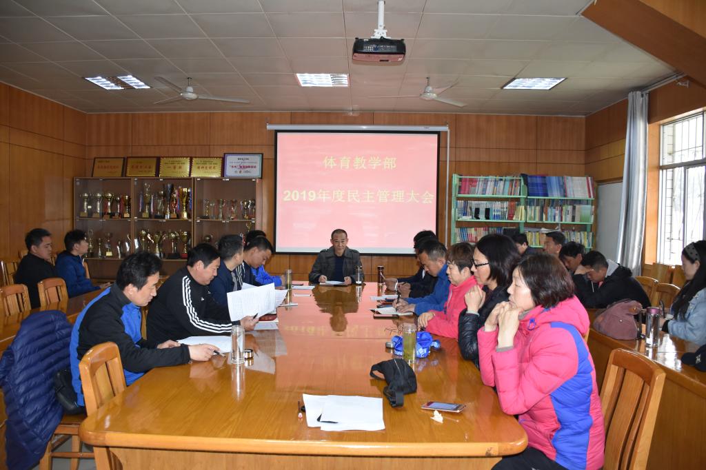 根据《中国工会章程》、《南阳理工学院教职工代表大会实施办法》相关规定及《体育教学部教职工大会制度》,体育教学部分工会为贯彻落实“南阳理工学院第四届教职工暨工会会员代表大会第三次会议”精神,于2019年3月28日上午在体育教学部会议室召开了“体育教学部2019年度民主管理会”。体育教学部全体教职工参加了本次民主管理大会。在民主管理大会预备会议上,工会会员代表表决通过了会议议程和会议主持人人选。