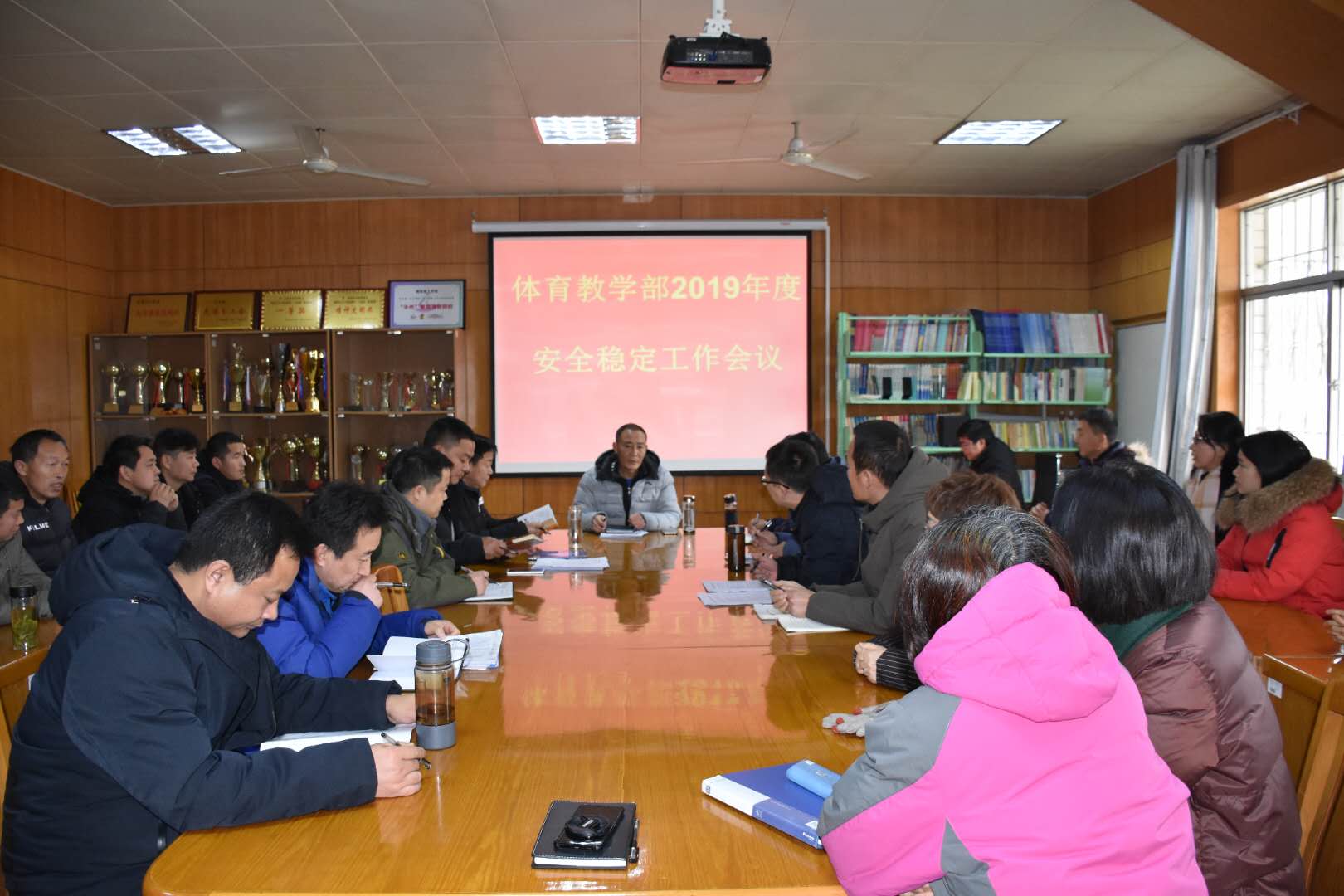 2019年1月15日下午15:00,体育教学部召开了全体教职工参加的2018年度安全稳定工作会议,部署2019年度安全稳定工作任务和寒假前防火、防盗及实验室安全检查等工作任务。
