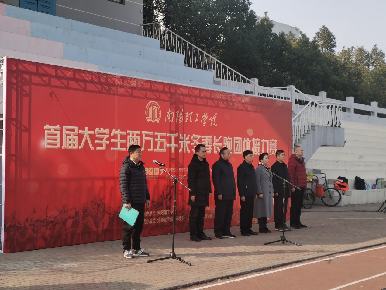 天时人事日相催,冬至阳生春又来。为纪念红军长征胜利84周年、积极做好疫情常态化防控工作、全面学校推进素质教育,我校12月22日在西北校区田径场举行南阳理工学院首届大学生两万五千米冬季长跑团体接力赛,党委副书记、工会主席张伟,党委委员、副校长张世海,党委委员、宣传部部长高芳放,学生处处长路瑞峰,团委书记郭兴华,体育教学部领导出席开幕式,副校长张世海在开幕式上指出开展体育运动、弘扬体育精神、培养健康体魄、塑造健全人格、促进人的全面发展是高等教育发展的必然要求。他希望全体同学珍惜人生中最美好的时光,努力学习,刻苦锻炼做一名自豪、自信、自强、自律的优秀大学生。