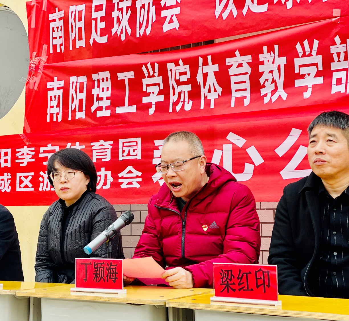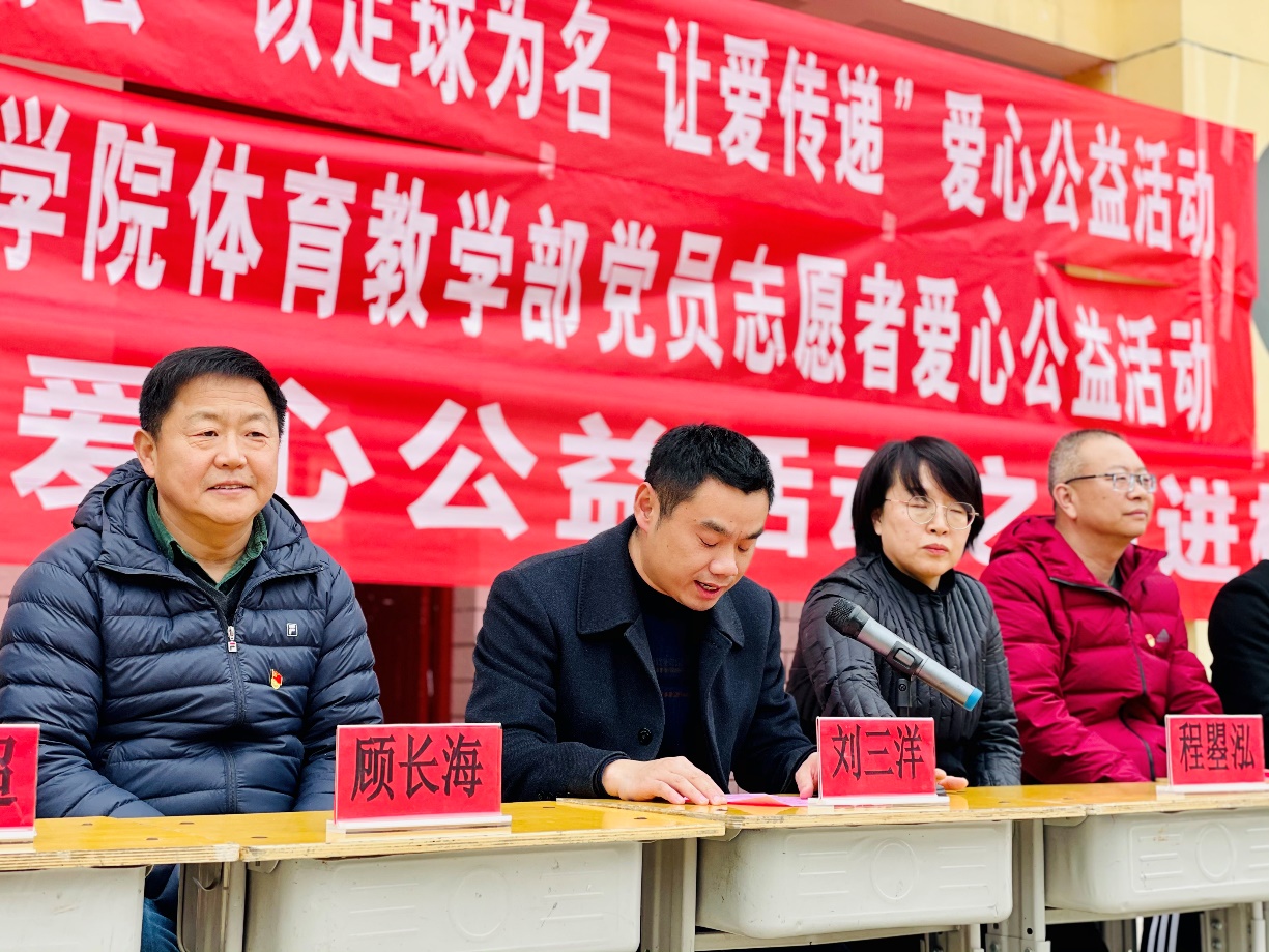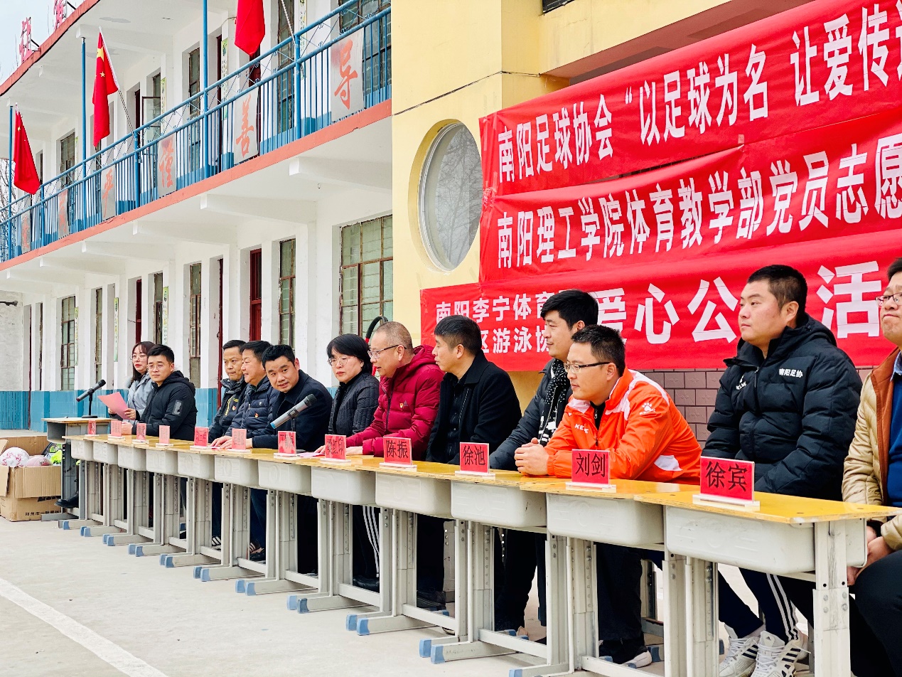 2020年12月25日下午,体育教学部党员志愿服务队携南阳市足球协会、河南世达体育产业有限公司、李宁体育园一行来到宛城区黄台岗镇中心小学进行献爱心公益志愿活动体育教学部党总支书记丁颖海,副主任顾长海,黄台岗镇副书记、镇长程曌泓,副书记刘三洋,南阳市政协委员、河南世达体育产业有限公司董事长梁红印等领导出席仪式。