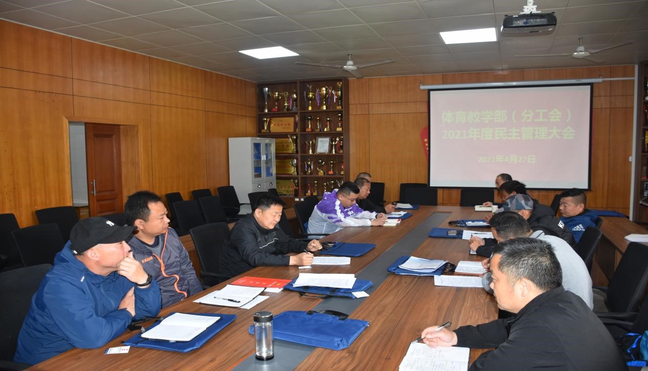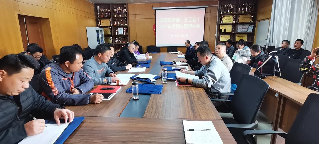 4月27日上午,在我部会议室召开2021年度体育教学部(分工会)民主管理大会开幕式,体育教学部全体教师参加了会议,会议由主任协理马晓宁主持。