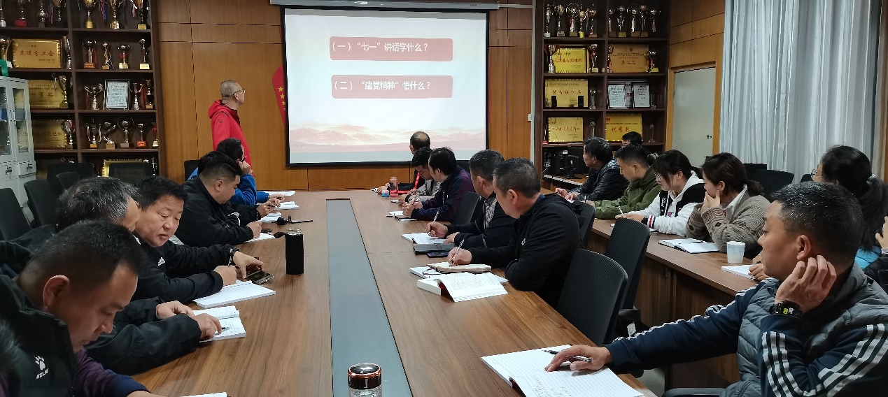 丁颖海书记从如何感悟这个“特殊的百年” 、如何看待这个“别样的暑期”、从百年党史中得到怎样的启示三个方面,带领大家从“一个庄严宣告”“一个事业主题”“一个伟大精神”“三个深刻改变”“四个伟大成就”“九个必须”等,对习近平总书记重要讲话精神进行了宣讲学习;结合这个暑期河南所发生的洪灾及疫情,感受我们党统一领导、集中力量办大事的制度优势。丁颖海书记要求大家深刻领会“七一”重要讲话精神实质,准确把握实践要求,以高度政治自觉传扬百年光辉历史、弘扬伟大建党精神、激发磅礡奋进力量,要坚持以习近平新时代中国特色社会主义思想为指导,牢记初心使命,切实把学习成果转化为推动高质量发展的强大动力,推动各项工作再上新的台阶。