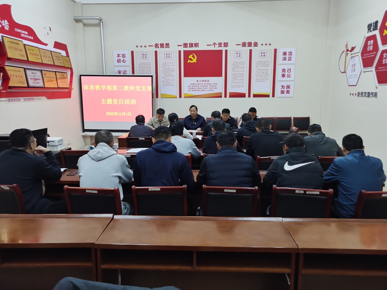 体育教学部党总支负责人在主持主题党日活动中提到,当前和今后一个时期,各级党组织最重要的政治任务就是学习好、领会好、贯彻好、落实好党的二十大报告精神。作为基层党支部,要进一步把思想和行动统一到党的二十大要求和部署上来,为接下来的各项教学科研工作打下坚实基础。
