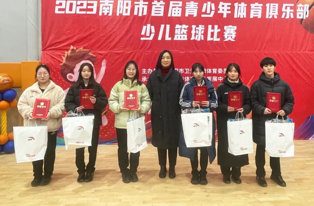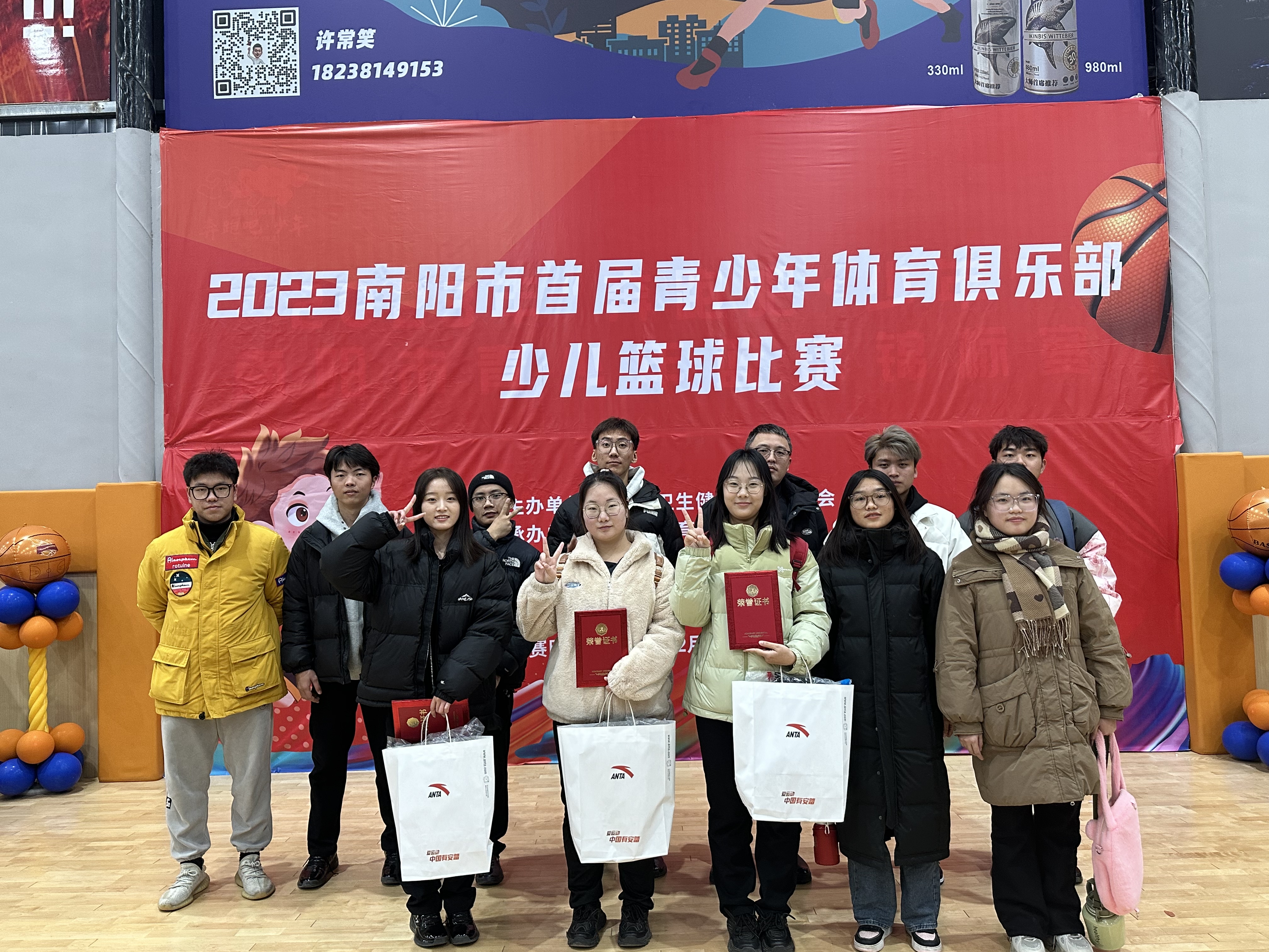 应大赛组委会邀请,我校学生篮球协会选派十名裁判员参与竞赛工作。比赛中,各位同学克服天气原因,坚守岗位,圆满完成各项竞赛任务,获得了南阳市卫生健康体育委员会领导和各参赛队一致好评。李冰瑞、郭静娴、刘英琪三名同学被南阳市卫生健康体育委员会授予最喜爱的裁判员荣誉称号。