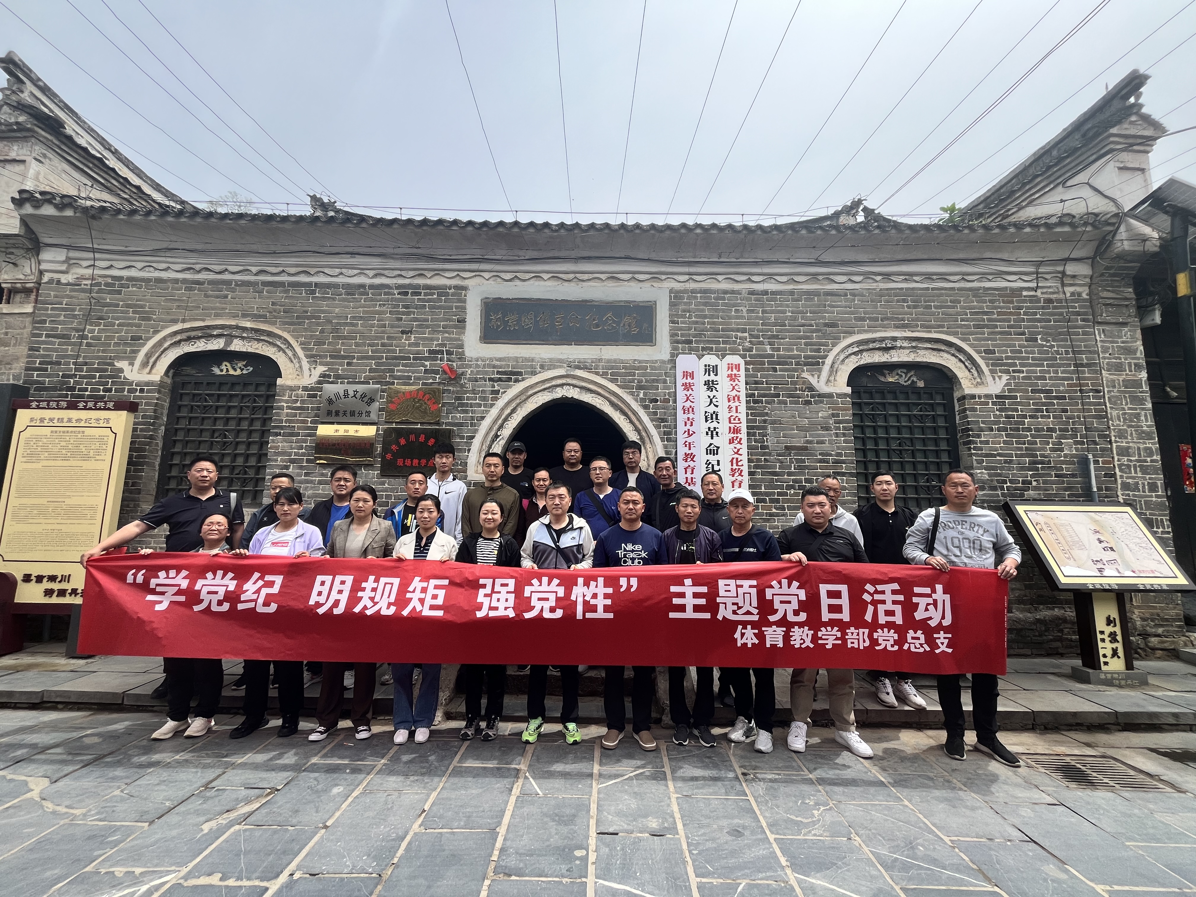本网讯(特约记者 徐驰)4月20日,体育教学部组织全体党员和入党积极分子前往淅川县荆紫关镇革命纪念馆,开展“学党纪 明规矩 强党性”党纪学习教育主题党日活动,全体党员和入党积极分子参加活动。