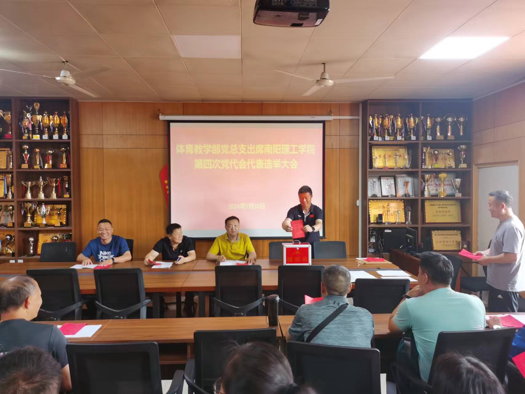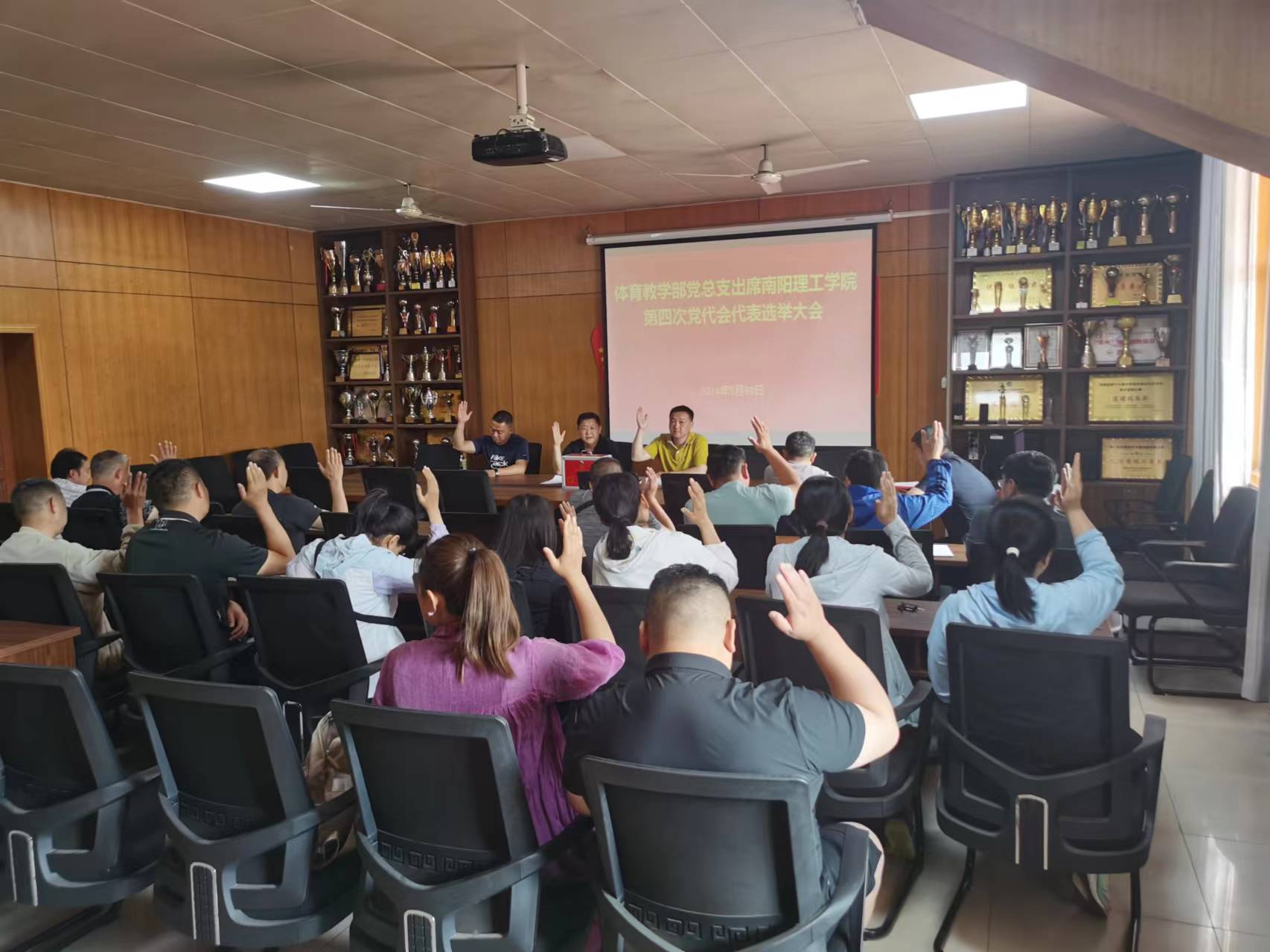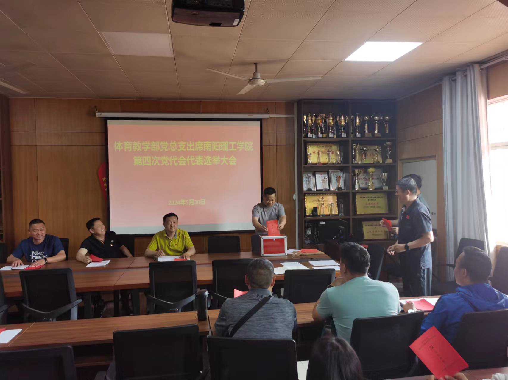 5月30日上午,我部在会议室召开全体党员大会,选举我部出席中国共产党南阳理工学院第四次代表大会代表,全体党员出席会议,会议由党总支书记张金梁主持。