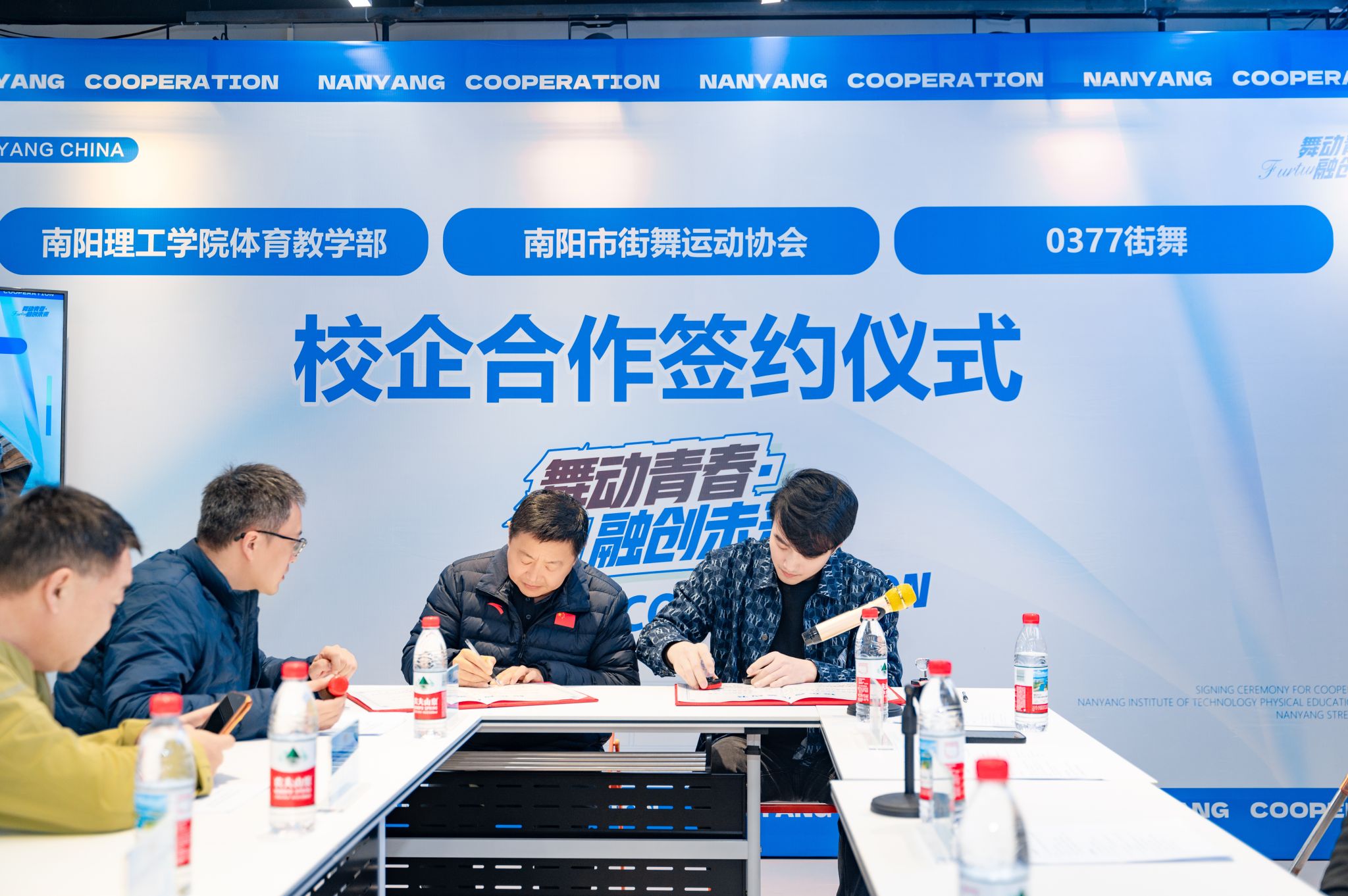 本网讯(特约记者/徐驰)11月6日上午,体育教学部与南阳市街舞运动协会和0377街舞文化传播有限公司共同举行校企合作签约仪式。本次活动以“舞动青春,融创未来”为主题,标志着街舞这项充满活力与时尚气息的运动项目,将全面融入高校人才培养体系,为南阳高等教育的多元化发展与校园文化创新注入全新动能。